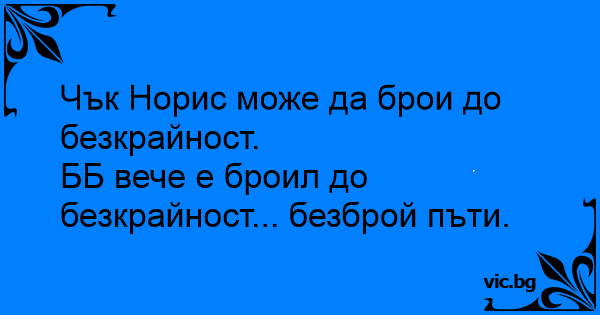 Чък Норис е единственият човек броил два пъти до безкрайност.
