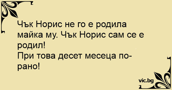 Чък Норис не го е родила майка му. Чък Норис сам се е родил!