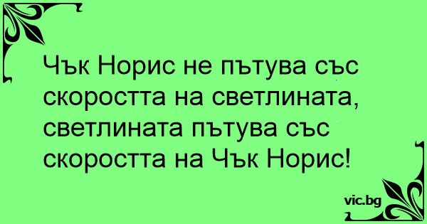 Чък Норис не пътува със скоростта на светлината, светлината пътува със скоростта на Чък Норис!
