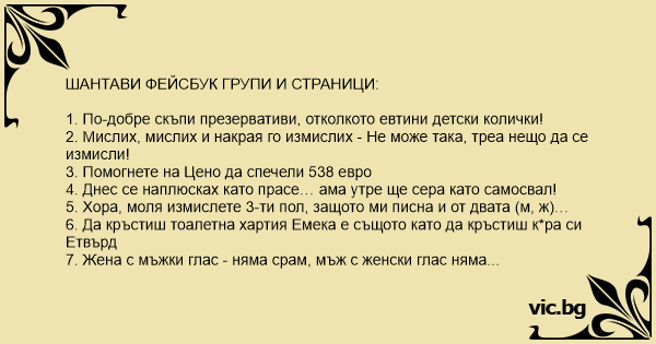 Вицове от Facebook от нашата страница https://www.facebook.com/www.vic.bg