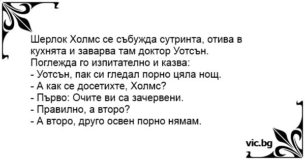 - Уотсън, пак си гледал пopнo цяла нощ.