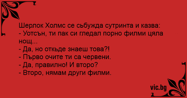 - Уотсън, ти пак си гледал пopнo филми цяла нощ...