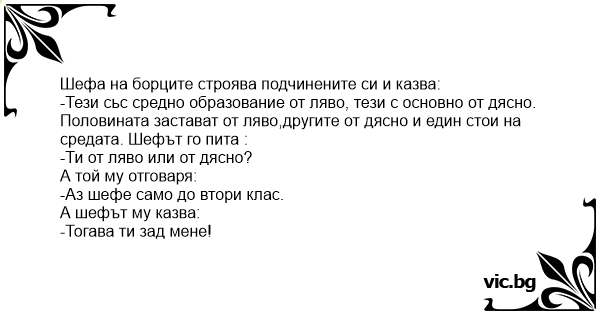 • Вицове от Facebook от нашата страница https://www.facebook.com/www.vic.bg