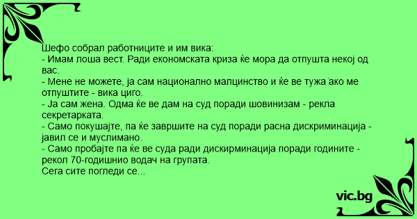 - Имам лоша вест. Ради економската криза ќе мора да отпушта некој од вас.