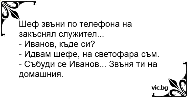 - Събуди се Иванов... Звъня ти на домашния.