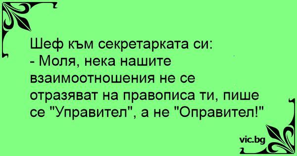 - Моля, нека нашите взаимоотношения не се отразяват на правописа ти, пише се "Управител", а не "Оправител!"