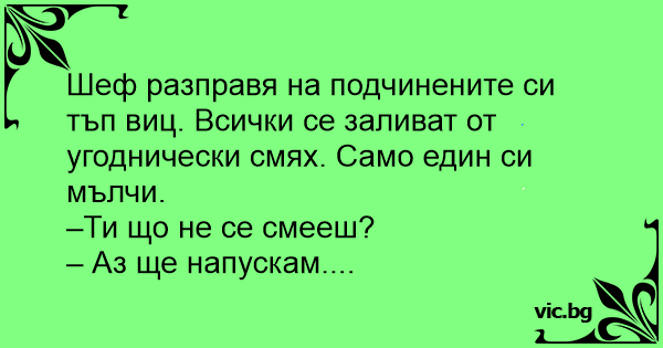 • Вицове от Facebook от нашата страница https://www.facebook.com/www.vic.bg