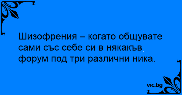 Шизофрения – когато общувате сами със себе си в някакъв форум под три различни ника.