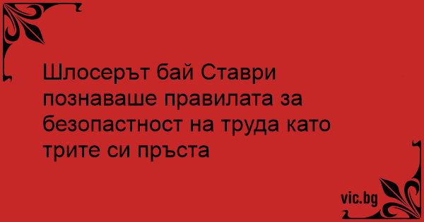Шлосерът бай Ставри познаваше правилата за безопастност на труда като трите си пръста