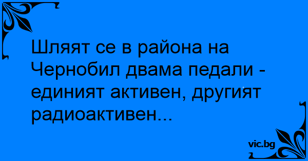 Шляят се в района на Чернобил двама педали - единият активен, другият радиоактивен...