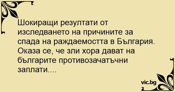 Оказа се, че зли хора дават на българите противозачатъчни заплати....