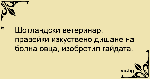 Шотландски ветеринар, правейки изкуствено дишане на болна овца, изобретил гайдата.