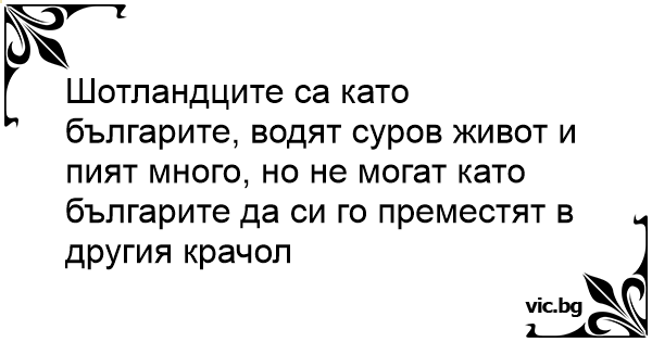 Шотландците са като българите, водят суров живот и пият много, но не могат като българите да си го преместят в другия крачол