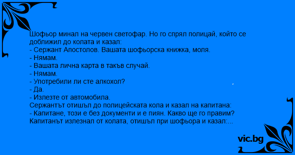 Сержантът отишъл до полицейската кола и казал на капитана: