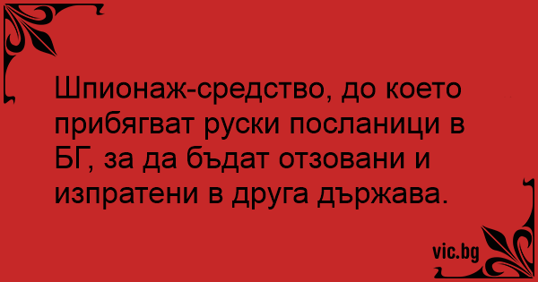 Шпионаж-средство, до което прибягват руски посланици в БГ, за да бъдат отзовани и изпратени в друга държава.