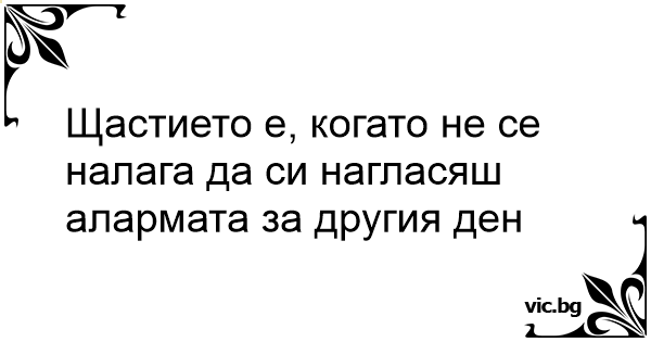 Щастието е, когато не се налага да си нагласяш алармата за другия ден