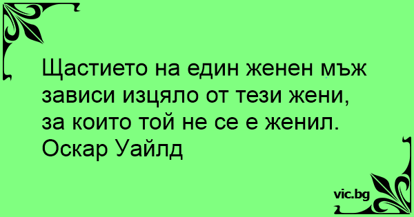 Щастието на един женен мъж зависи изцяло от тези жени, за които той не се е женил.