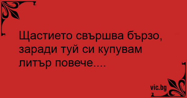 Щастието свършва бързо, заради туй си купувам литър повече....