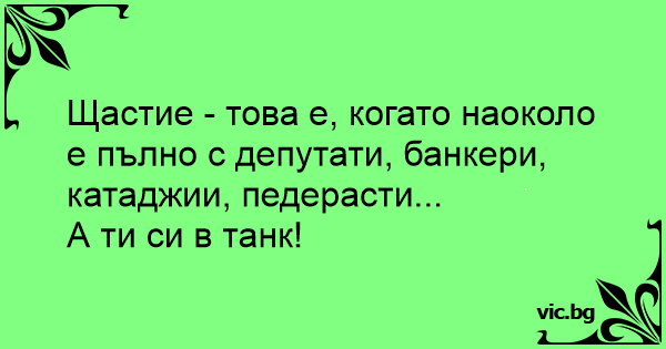 Щастие - това е, когато наоколо е пълно с депутати, банкери, катаджии, пeдepactи...