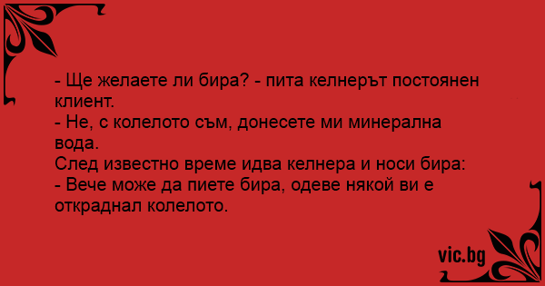 След известно време идва келнера и носи бира: