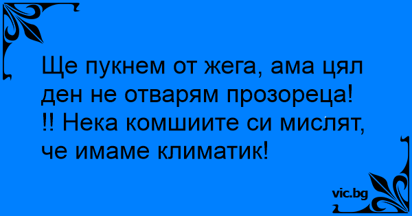 !! Нека комшиите си мислят, че имаме климатик!