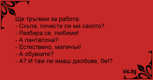 • Вицове от Facebook от нашата страница https://www.facebook.com/www.vic.bg