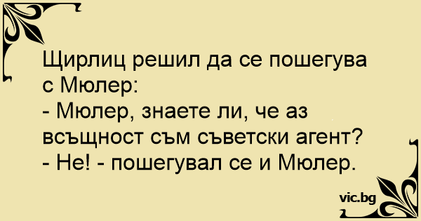 - Мюлер, знаете ли, че аз всъщност съм съветски агент?