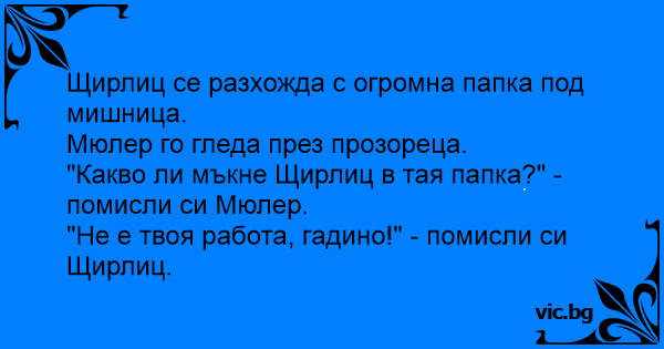 "Какво ли мъкне Щирлиц в тая папка?" - помисли си Мюлер.