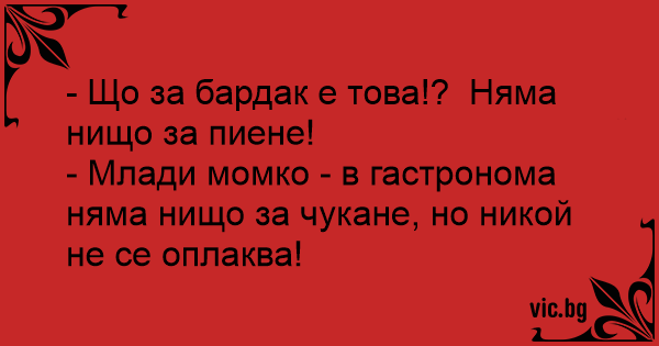 - Млади момко - в гастронома няма нищо за чуkaнe, но никой не се оплаква!