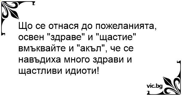 Що се отнася до пожеланията, освен "здраве" и "щастие" вмъквайте и "акъл", че се навъдиха много здрави и щастливи идиоти!
