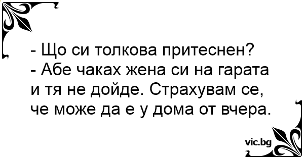 - Абе чаках жена си на гарата и тя не дойде. Страхувам се, че може да е у дома от вчера.