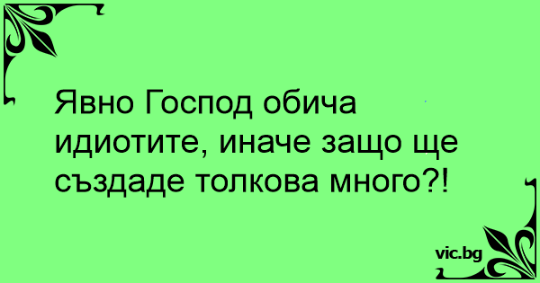 Явно Господ обича идиотите, иначе защо ще създаде толкова много?!