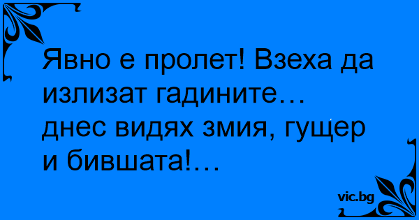 Явно е пролет! Взеха да излизат гадините… днес видях змия, гущер и бившата!…