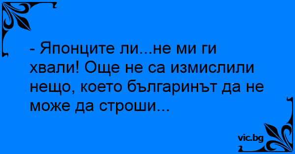 - Японците ли...не ми ги хвали! Още не са измислили нещо, което българинът да не може да строши...