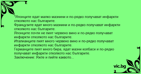 Французите ядат много мазнини и по-рядко получават инфаркти отколкото нас българите.