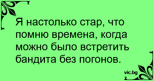 Я настолько стар, что помню времена, когда можно было встретить бандита без погонов. 1 0 0 Български Вицове