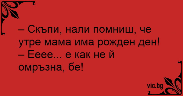 – Скъпи, нали помниш, че утре мама има рожден ден!