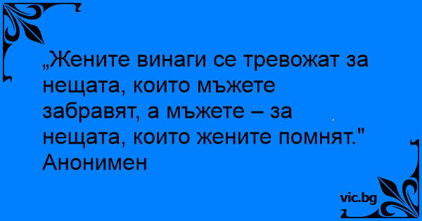 „Жените винаги се тревожат за нещата, които мъжете забравят, а мъжете – за нещата, които жените помнят."