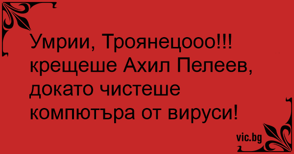 крещеше Ахил Пелеев, докато чистеше компютъра от вируси!