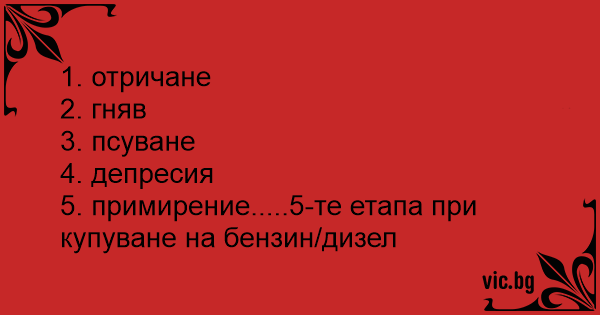 5. примирение.....5-те етапа при купуване на бензин/дизел