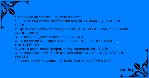 10 причини да зарежеш гаджето жените: