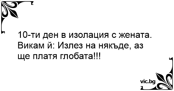 10-ти ден в изолация с жената. Викам й: Излез на някъде, аз ще платя глобата!!!