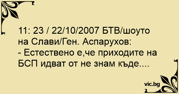 11: 23 / 22/10/2007 БТВ/шоуто на Слави/Ген. Аспарухов: