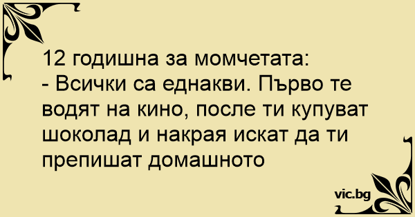 - Всички са еднакви. Първо те водят на кино, после ти купуват шоколад и накрая искат да ти препишат домашното