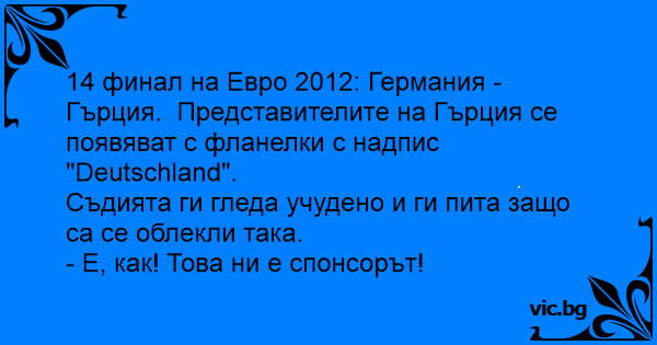 14 финал на Евро 2012: Германия - Гърция. Представителите на Гърция се появяват с фланелки с надпис "Deutschland".