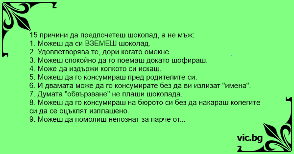 15 причини да предпочетеш шоколад, а не мъж: