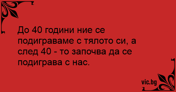 До 40 години ние се подиграваме с тялото си, а след 40 - то започва да се подиграва с нас.