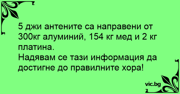 5 джи антените са направени от 300кг алуминий, 154 кг мед и 2 кг платина.