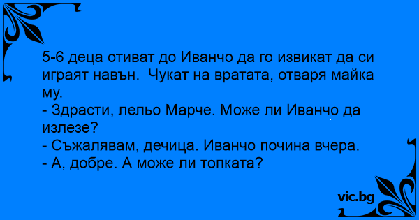 - Здрасти, лельо Марче. Може ли Иванчо да излезе?