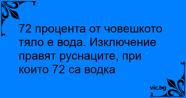 72 процента от човешкото тяло е вода. Изключение правят руснаците, при които 72 са водка